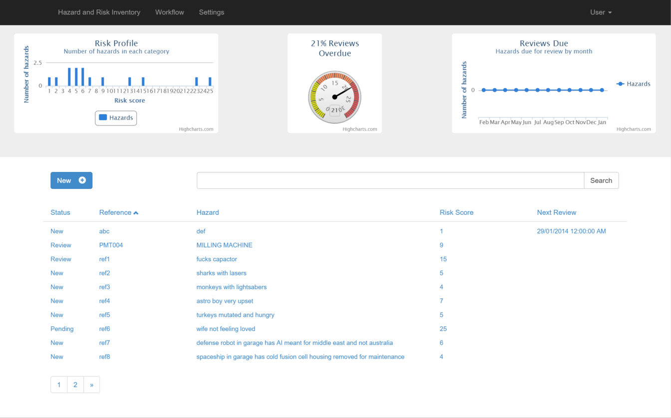 Basic data entry for hazards. Realtime dashboards on risk profiles.